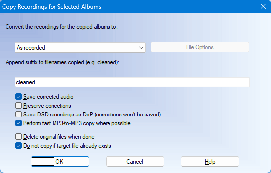 VinylStudio can copy the recordings for the selected albums so that, for example, you can save a cleaned up copy to export as a CUE sheet.