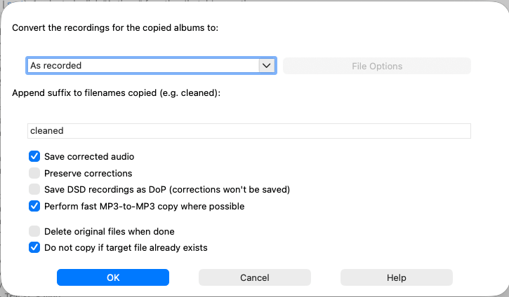 VinylStudio can copy the recordings for the selected albums so that, for example, you can save a cleaned up copy to export as a CUE sheet.